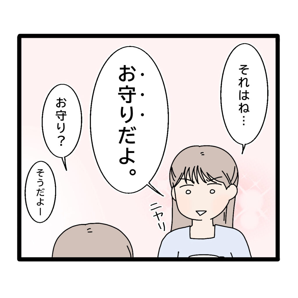 「それはね・・お守りだよ」そう言ってニヤリと笑う姉を見て、「お守り?」と聞き返すと、「そうだよー」とあっけらかんと言いました。