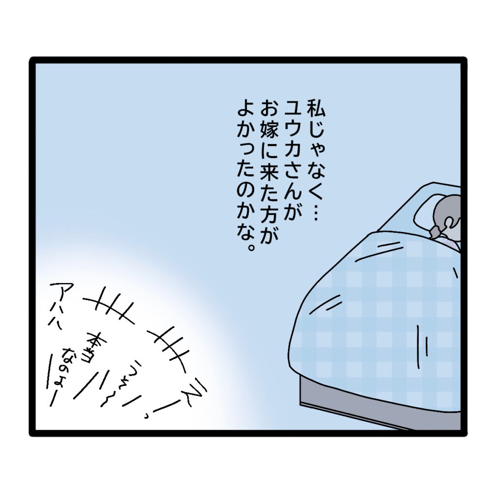 そしてベッドに横になった私は、「私じゃなく・・ユウカさんがお嫁に来た方がよかったのかな」と、リビングから聞こえる楽しそうな声を聞いて思いました。