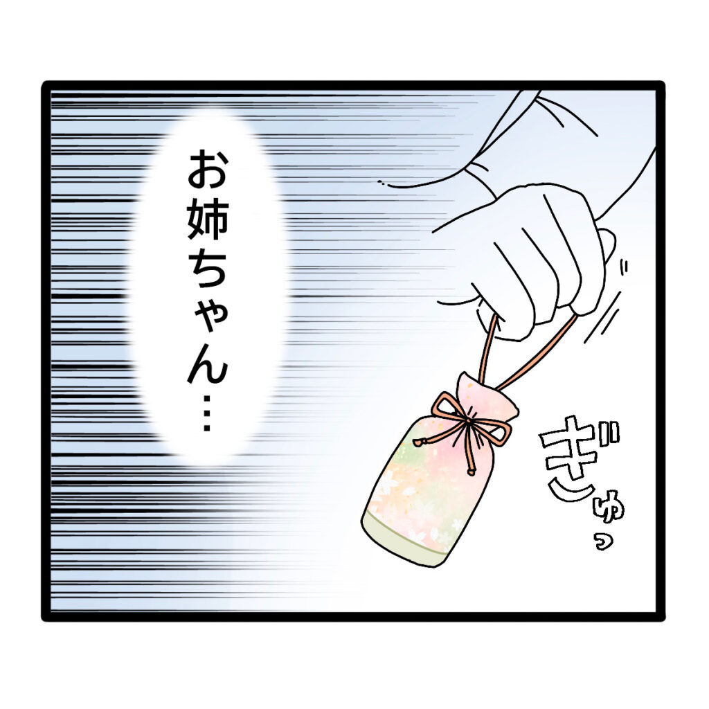「お姉ちゃん・・」姉からもらったお守りをぎゅっと握りしめる