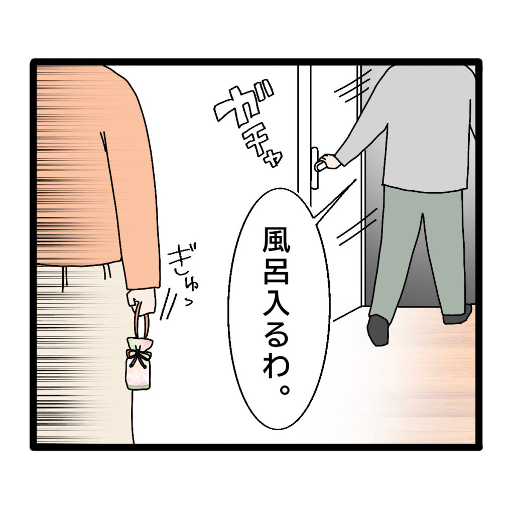 面倒くさそうに話を無理やり終わらせて「風呂入るわ」とさっさと部屋を出て行ってしまう夫を見て、思わず姉からもらったお守りをギュッと握りしめました。