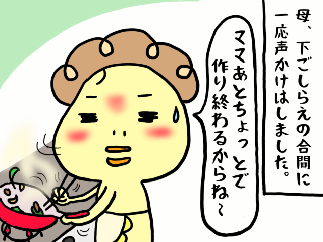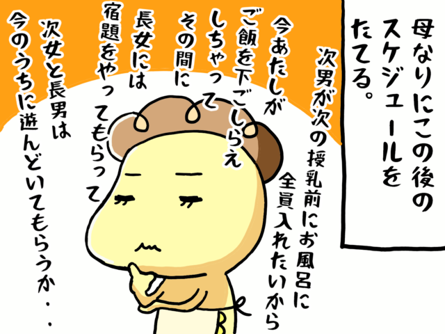 次男が次の授乳前にお風呂に全員入れたいから、今あたしがご飯を下ごしらえしちゃって、