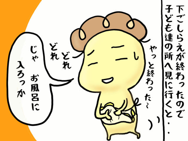 「やっと終わった~。じゃ、お風呂に入ろっか」