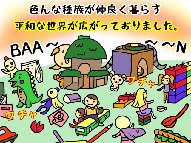 例えるならば、いろんな種族が仲良く暮らす、平和な世界が広がっていたのでした・・
