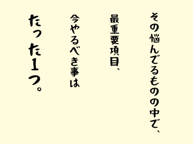 その悩んでるものの中で、最重要項目、今やるべき事は