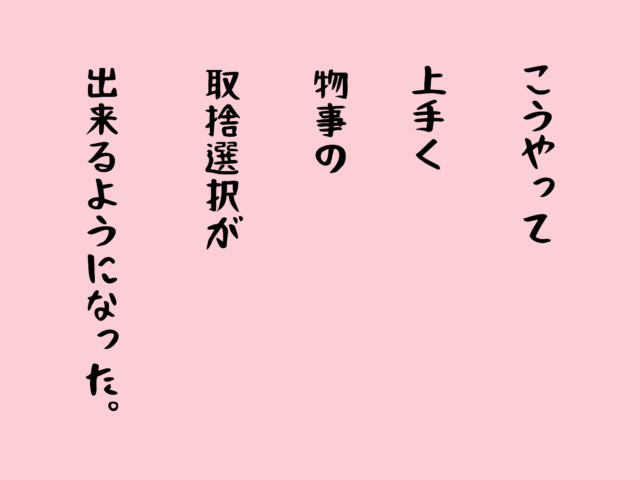 あたしには全てを完璧に全部をやるのは無理だから、上手く諦める事が出来るようになった。