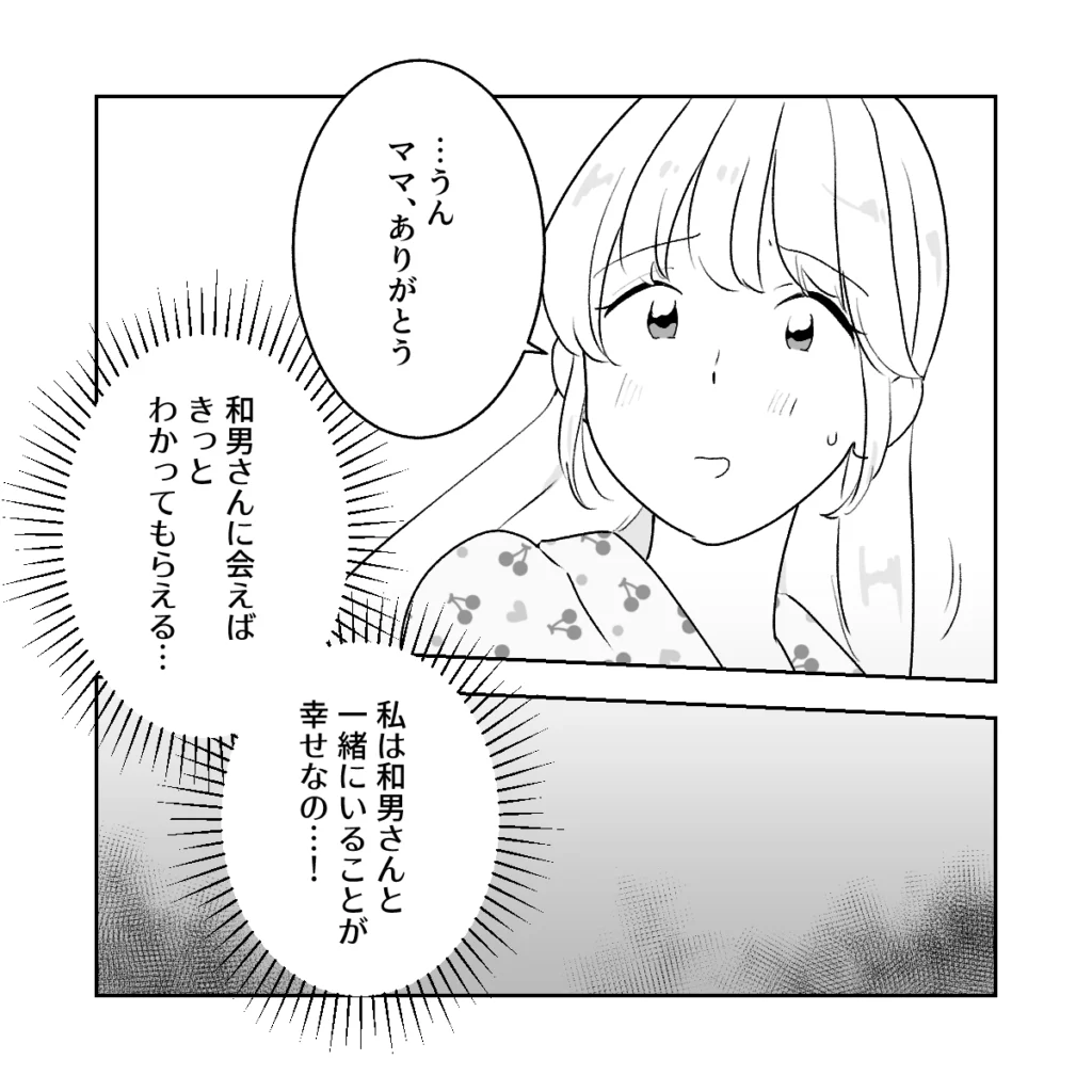 パパは頑なに結婚を認めず、私はどうしても認めてほしい。お互いの想いは噛み合わないまま話は平行線。すると、ママは少し考え込むような仕草をして、「・・・ユメは和男さんを支えたいのね、でも一度会わせてくれる?会ってみないとさすがに賛成できないわ」と優しく言ってくれました。