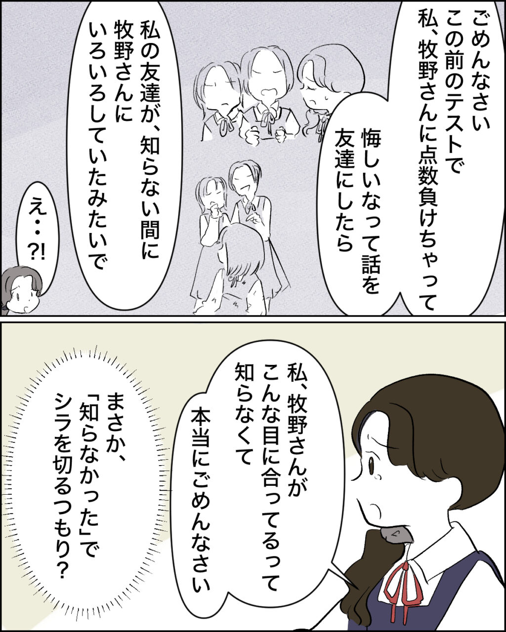 なんと風見さんは、いじめは自分ではなく「友達が知らない間にやっていたこと」にすり替えようとしたのです。自分はただ負けて悔しかったと言っただけで直接手を下したわけではない、そう主張する彼女を前に、私は思わず言葉を失いました。まさかこの場に及んで、「知らなかった」でシラを切るつもりなの!?